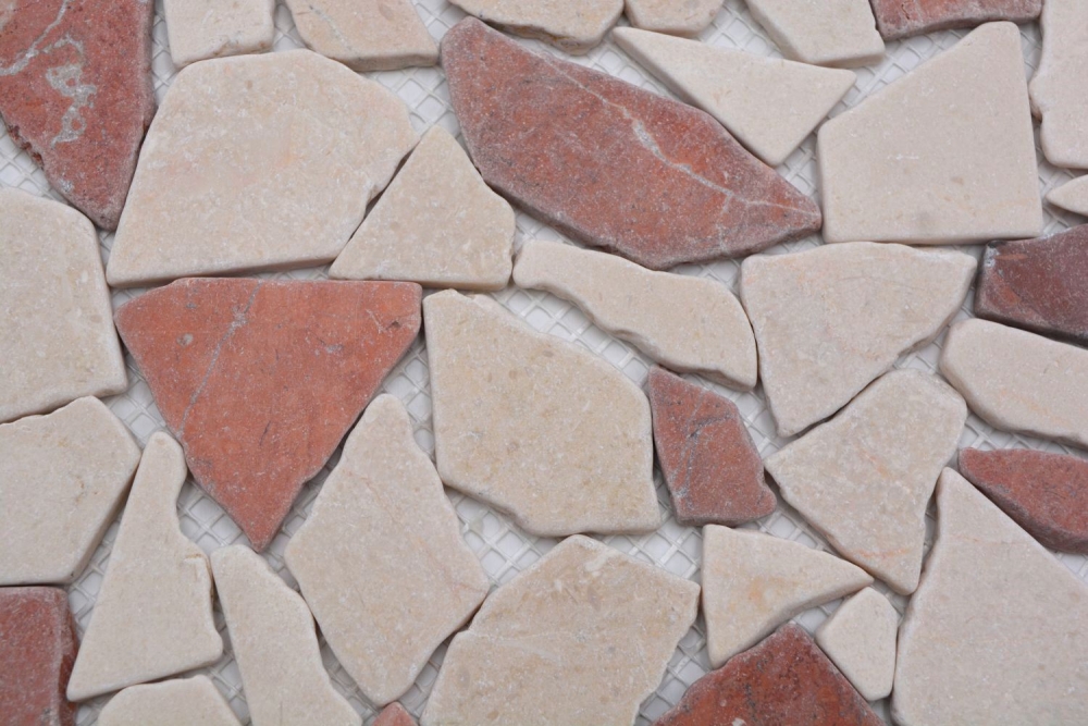 Bruchmosaik Polygonal Marmor Natursteinmosaik rot beige Rosso Verona Botticino 44-1002