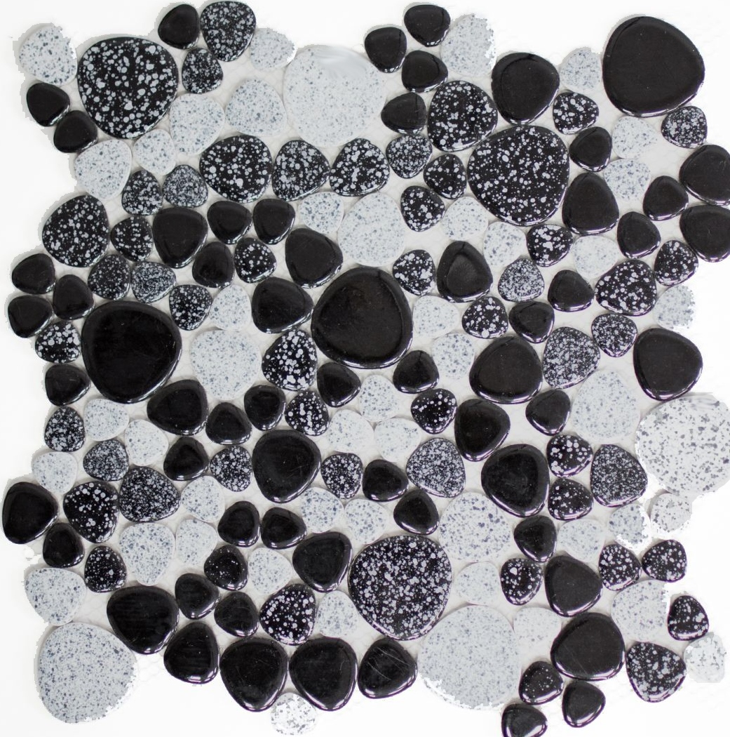 Kieselmosaik Drops grau schwarz Keramiksteine Mosaiksteine Duschboden Duschwand 12-0103