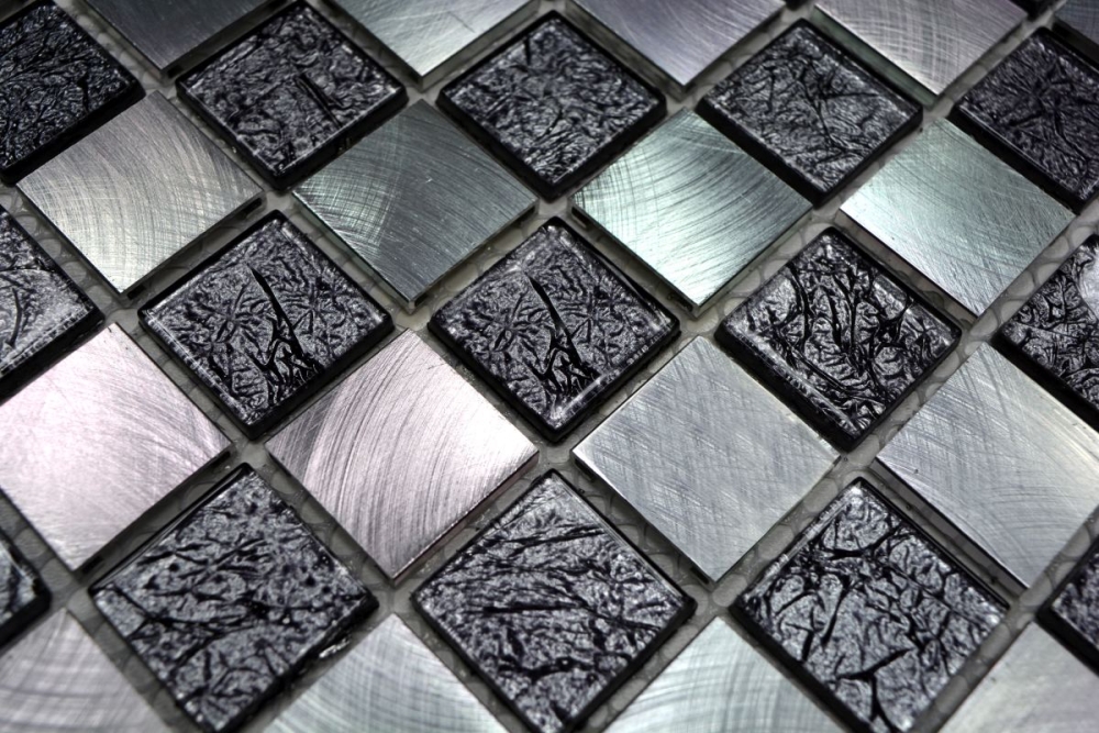 Mosaik Fliese Aluminiummosaik Glasmosaik Schachbrett Schwarz Silber Struktur Wandfliese - 49-0302