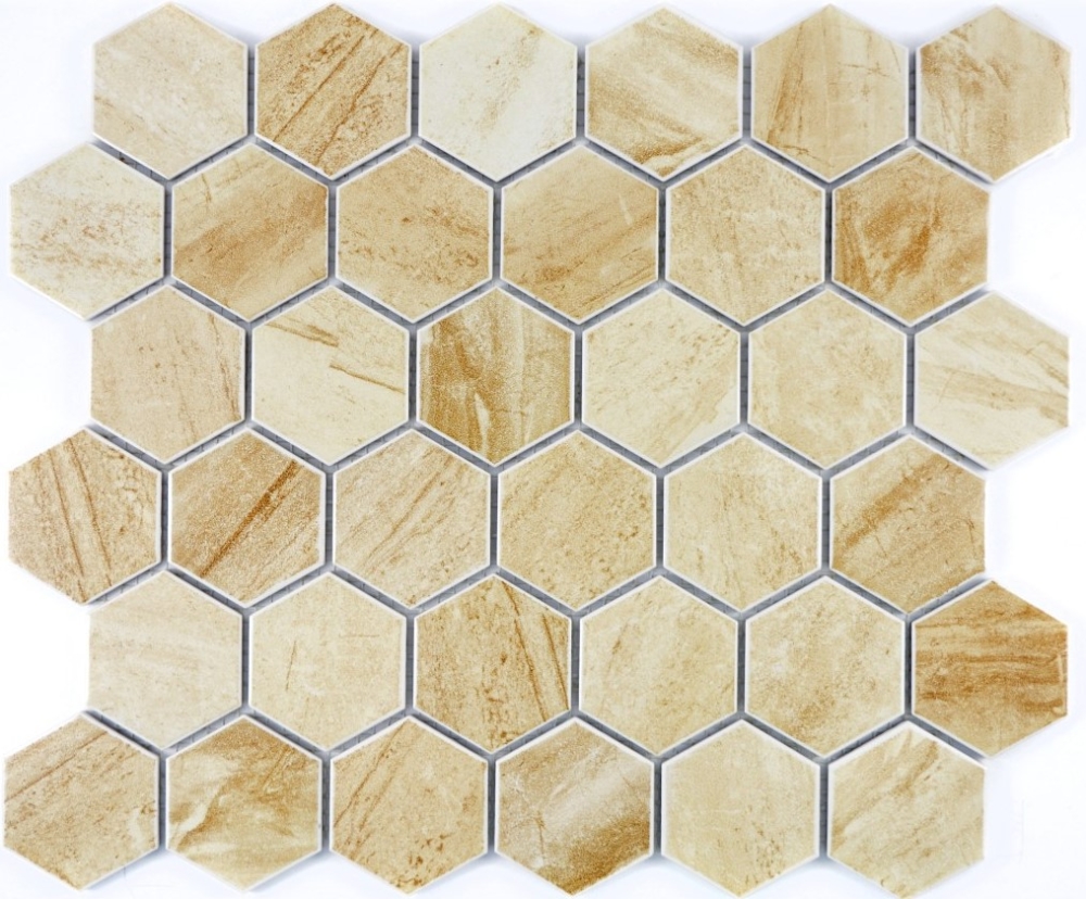 Mosaik Fliese Keramikmosaik Hexagon Travertin beige matt 11G-1202
