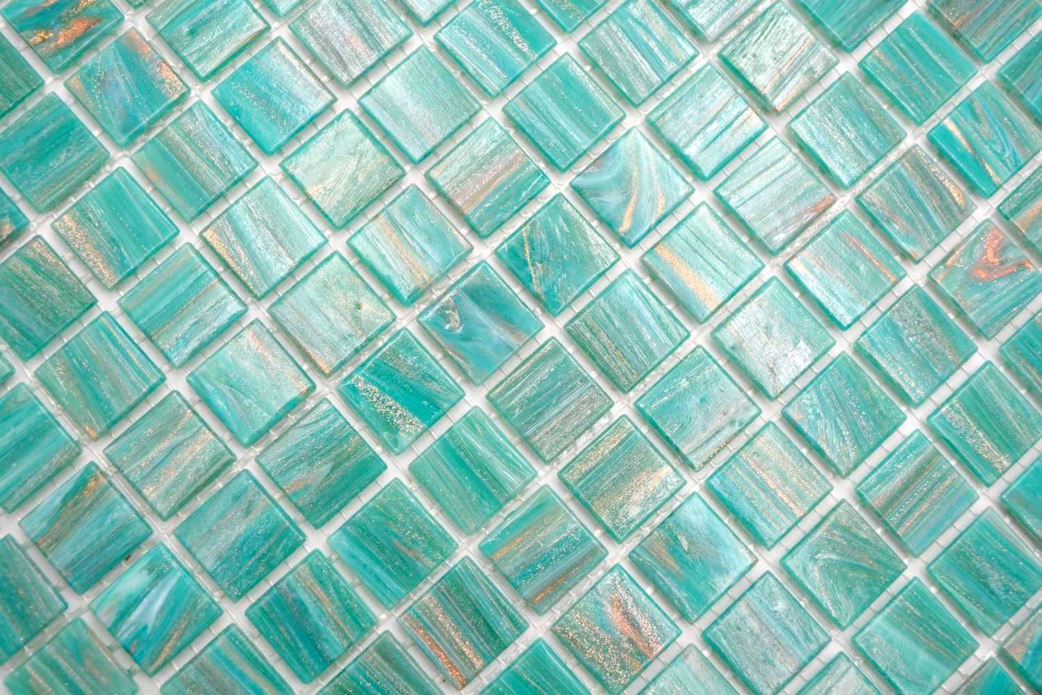 Mosaikfliese Glasmosaik Grün Türkis Kupfer changierend
