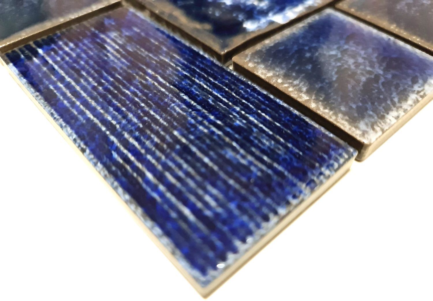 Retro Mosaikfliese blau glänzend used look Keramik Mosaik - 13-KAS2