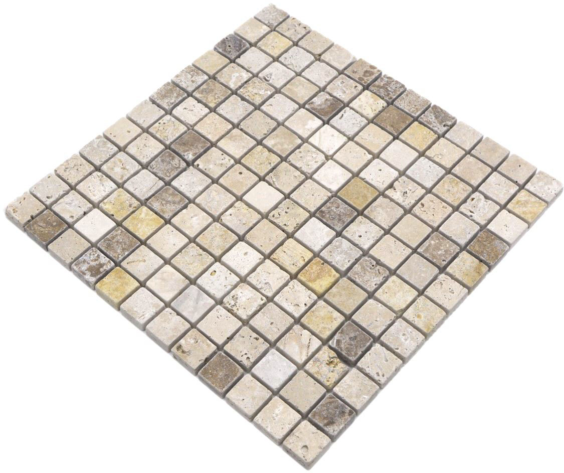 Travertin Mosaik Fliese Natursteinmosaik beige braun getrommelt 43-46380